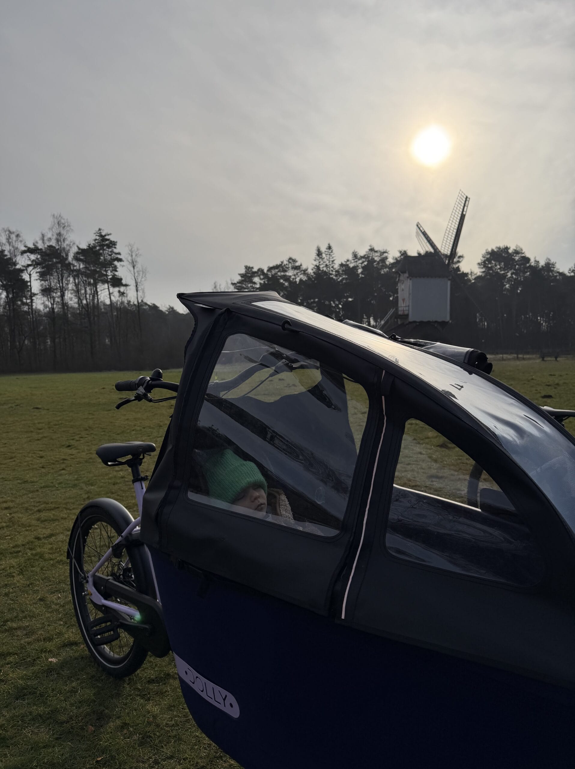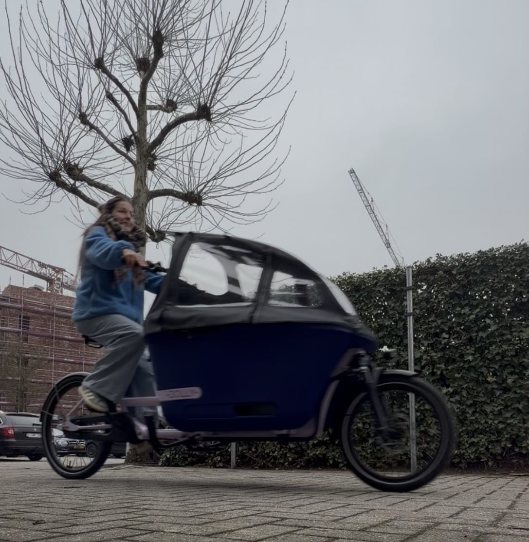 Ik ben zo blij met m’n bakfiets. Ik voel me meer verbonden met de natuur en met m’n kindjes. Hij rijdt echt zalig en de kindjes zitten fijn. Ik vind ‘m alleen best zwaar, zeker met kindjes in.